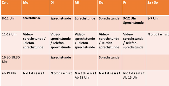 Zu den folgenden Zeiten sind wir in der Praxis für Sie da