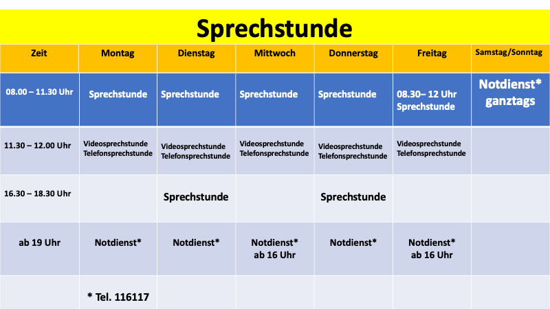 Zu den folgenden Zeiten sind wir in der Praxis für Sie da